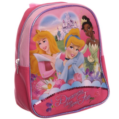 Disney Princesses Girls 10 Inch Mini Toddler School Backpack. Features one main zippered compartment, adjustable shoulder straps, and carrying strap on top. Measures approximately: 10 inches x 8 inches x 4 inches. Perfect for your little Disney Princess fan!!